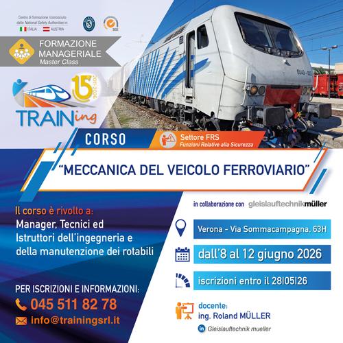 Der Kurs richtet sich an Manager, Techniker/innen und Ausbilder/innen im Bereich Fahrzeugtechnik und -instandhaltung. Der Kurs umfasst 11 Module und deckt folgende Themen ab: Drehgestelle, Aufhängung, Bremsen, Vibration, Rad-Schiene-System, Radsätze und Schäden.