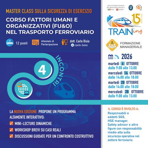 Die EU-Verordnung 762/2018 enthält wichtige Neuerungen für das Risikomanagement im Bereich des Eisenbahntransports. Es wird hervorgehoben, dass es „unabdingbar ist, dass Eisenbahnverkehrs unternehmen und Infrastrukturbetreiber einen systematischen Ansatz verfolgen, um im Rahmen des Sicherheitsmanagements die menschliche Leistung zu unterstützen und menschliche wie auch organisatorische Faktoren zu steuern“. Dieser Aspekt ist eng mit der „Förderung einer positiven Sicherheitskultur“ verbunden und deren Bedeutung wird in der EU-Verordnung laufend betont. Darin wird auch die Notwendigkeit hervorgehoben, die Mitarbeiter zu motivieren, aktiv an einer Strategie zur ständigen Verbesserung der Sicherheitskultur“ teilzunehmen. Der Kurs richtet sich an Geschäftsführer/innen, Führungs - kräfte und für das SMS verantwortliche Personal von Eisenbahnverkehrsunternehmen und Infrastrukturbetreibern.